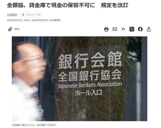 全国銀行協会(全銀協)が加盟各行向けのルールを見直し、貸金庫で現金を保管するのを禁止する方針を固めたことが発表されました。