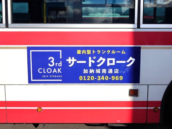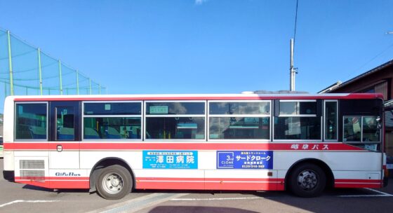 岐阜バスの車体側面に「サードクローク」の看板が付きました。
