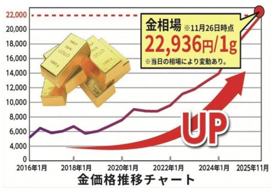テレビ等でも報道されているように「金価格」の高騰が止まりません。